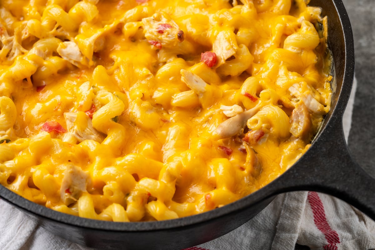 A skillet with king ranch mac and cheeseA skillet with king ranch mac and cheese