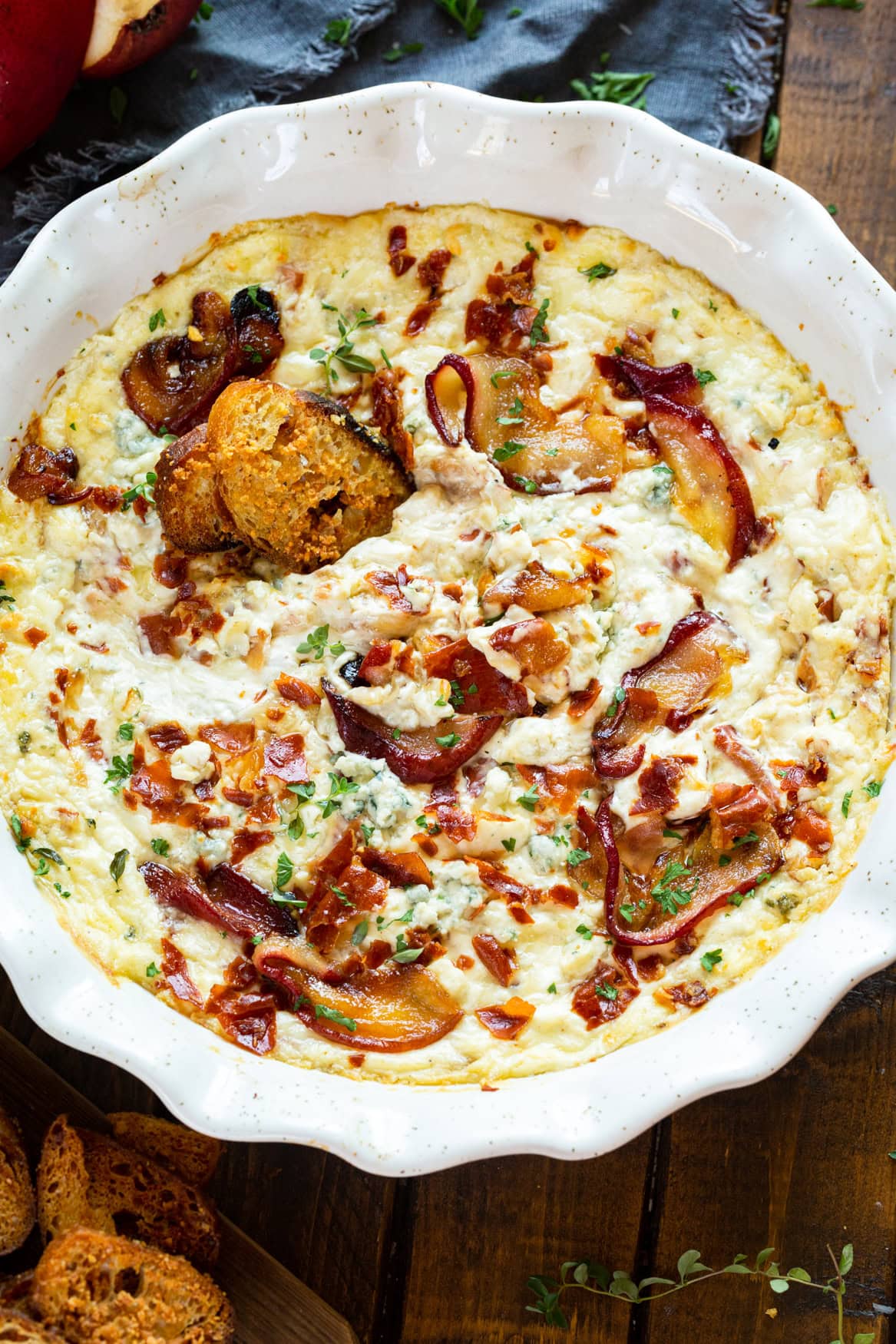 The other secrets are the crispy prosciutto, roasted pears and the other 3 cheeses in the dip, but with everything combined and that unique flavor of blue cheese, this dip recipe is one that will have everyone asking for more!