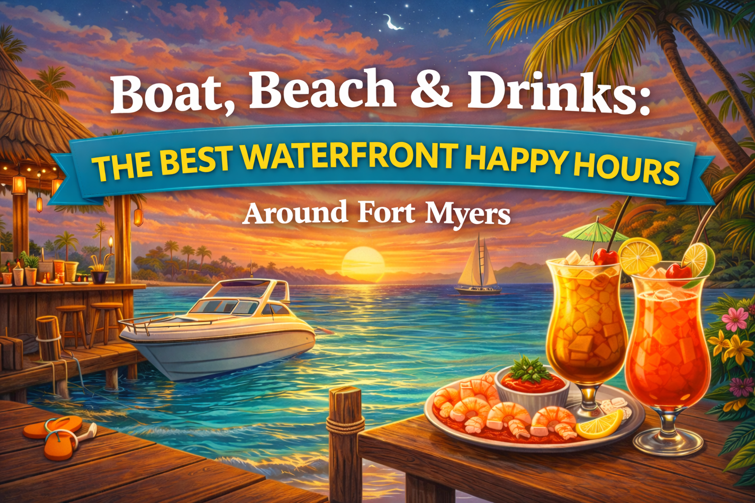 Using the classic Lee County Water-Access Restaurants map, we put together this go-to happy hour guide highlighting some of the most loved spots on the water, typical happy hour times, and one standout drink or appetizer worth ordering. I covered most of the spots shown on the map, but a few aren’t mentioned below.
